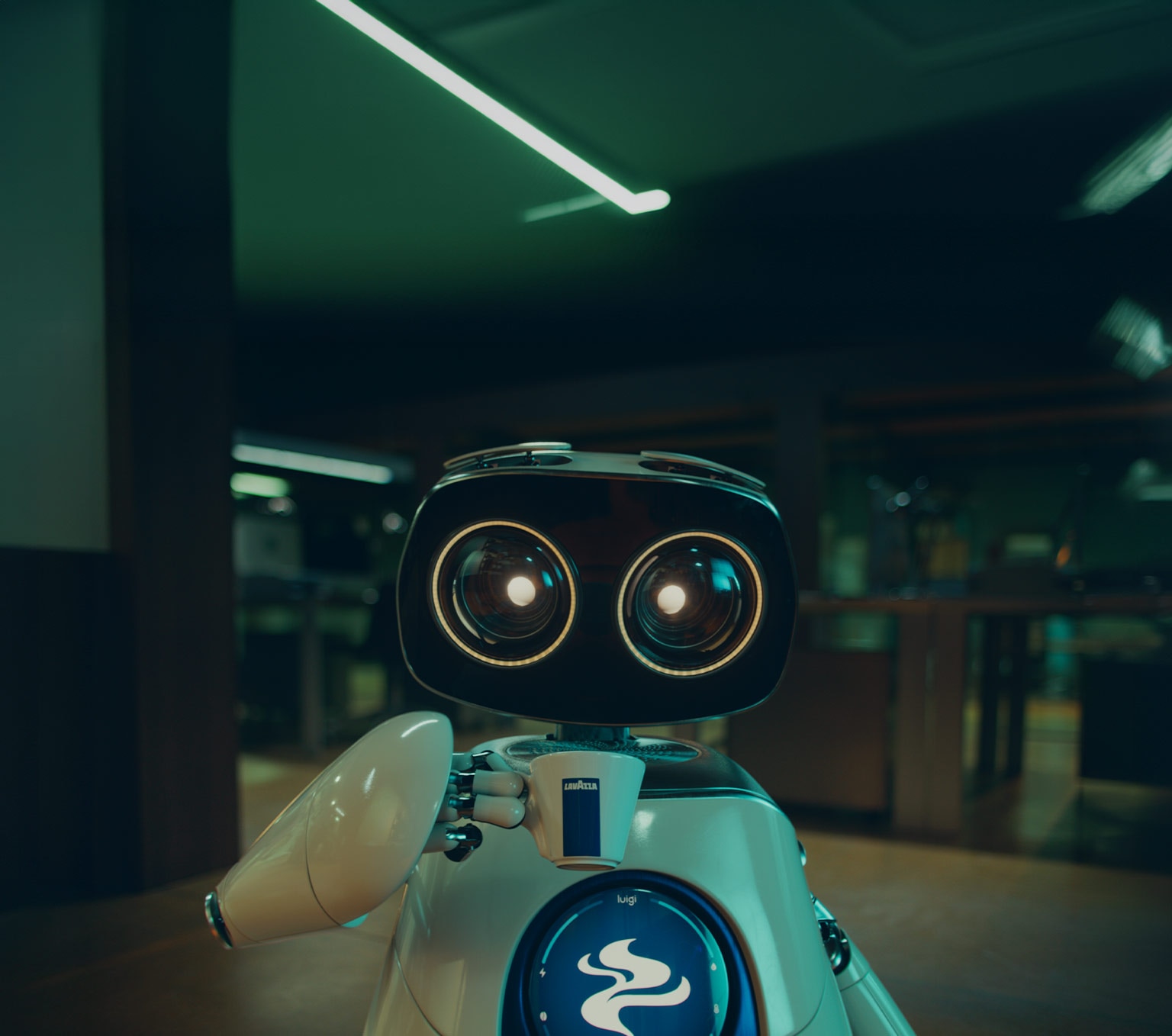 Ο Luigi είναι μια χαριτωμένη καφετιέρα γραφείου που καθημερινά βλέπει τον κόσμο να χαίρεται τη ζωή, μια στάση ζωής κι ένα άρωμα που εμπνέει όλο τον κόσμο. Χάρη στον καφέ Lavazza, φέρνει ευχαρίστηση στους ανθρώπους που εργάζονται μαζί του και ονειρεύεται να γευτεί κι αυτός τον καφέ. Εμείς πιστεύουμε ότι ένα φλιτζάνι καφέ είναι κάτι παραπάνω από ένα ρόφημα: είναι μια στιγμή τόνωσης που αξίζει να την μοιραστεί κανείς με τους αγαπημένους του. Είναι συνώνυμο της ευχαρίστησης. Το μεγαλύτερο όνειρο του Luigi είναι να δοκιμάσει τον καφέ μας και να νιώσει την ίδια ευχαρίστηση, αλλά δεν μπορεί. Γι’αυτό συμπρωταγωνιστεί με τους κωμικούς και αστέρες του Hollywood, XX και XX. Μαζί στη σκηνή, απολαμβάνουν ένα ευχάριστο διάλειμμα με καφέ Lavazza και τον Luigi, προσθέτοντας μια δόση χιούμορ και ζεστασιάς στην ιστορία μας!